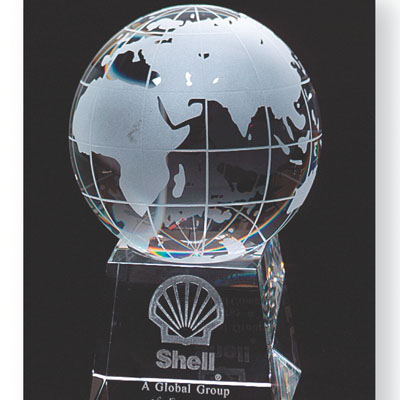 | CR 136 Optical Crystal Globe Ht. 6", 4" Etched, Base Ht. 2" x 3" x 3" Engraveable area: 2" Ht. x 1 1/2" |