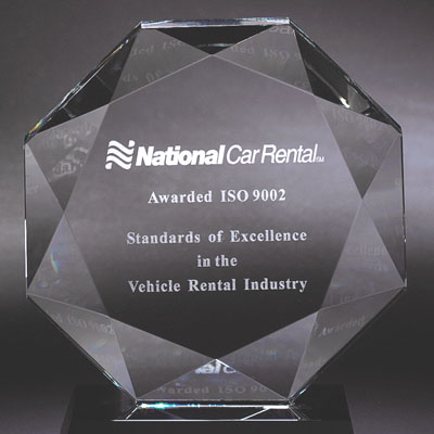 | CR 139 Optical Cut Octagon Ht. 8 3/4" x 8", 1 1/4" thick Engraveable area: 5" x 5" |