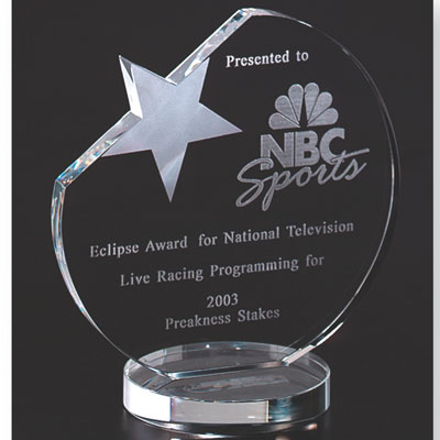 | CR 185 Optical Cut Round Crystal w/ Star Ht. 6" x 5 1/2", 1/2" thick Engraveable area: 4" x 4" |