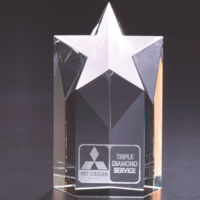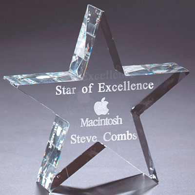 | CR 210 Optical Cut Crystal 4" Star Engraveable area 1 1/2" Ht., 3" width, bottom 2" |