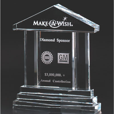 | CR 209 Optical Cut Crystal Ht. 7" Engraveable area Roof: 3 1/2", House 2 1/4" x 3 1/2" width |